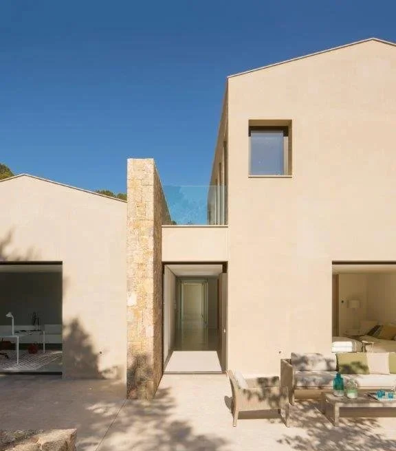 Consultancy for a substantial new build family home in a UNESCO natural heritage site. The lateral layout features two courtyards, six bedrooms, and fluid indoor-outdoor living, integrating local stone, clay plaster, and quarry-sourced floors. Sustainability and craftsmanship were central to the project.