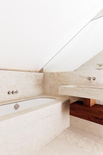 This stunning family residence is located in a Conservation Area near Holland Park. A reconfigured top floor provides a light infused area for the growing needs of the children. Two bedrooms with ensuite bathrooms were designed to flow from a central streamlined corridor that includes built-in wardrobe space. A beautiful series of skylights allows previously dark spaces to be well lit, while built in joinery conceals storage and one ensuite bathroom.